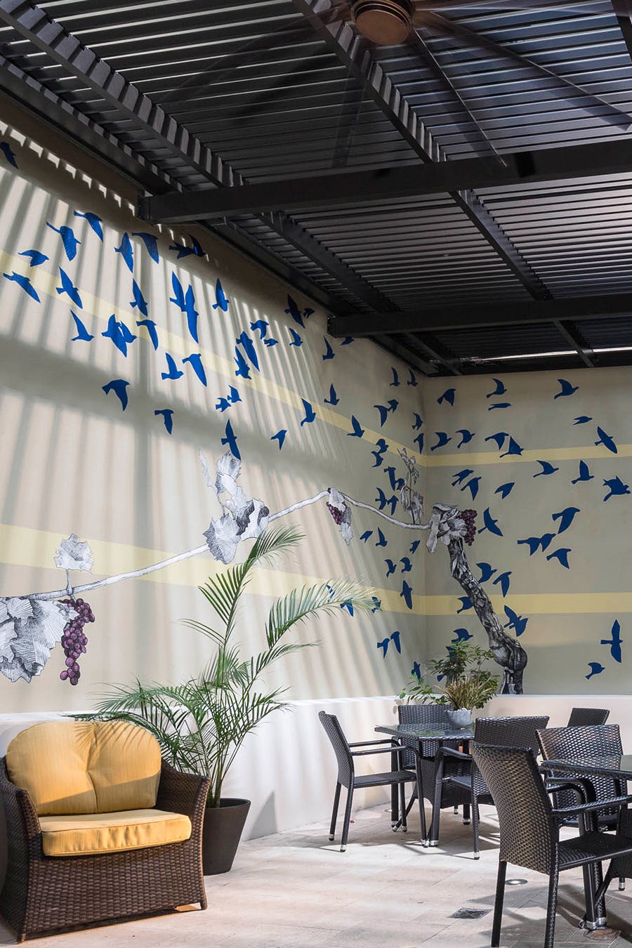 モロッコ風のデザインと敷地内の隠れ家バー