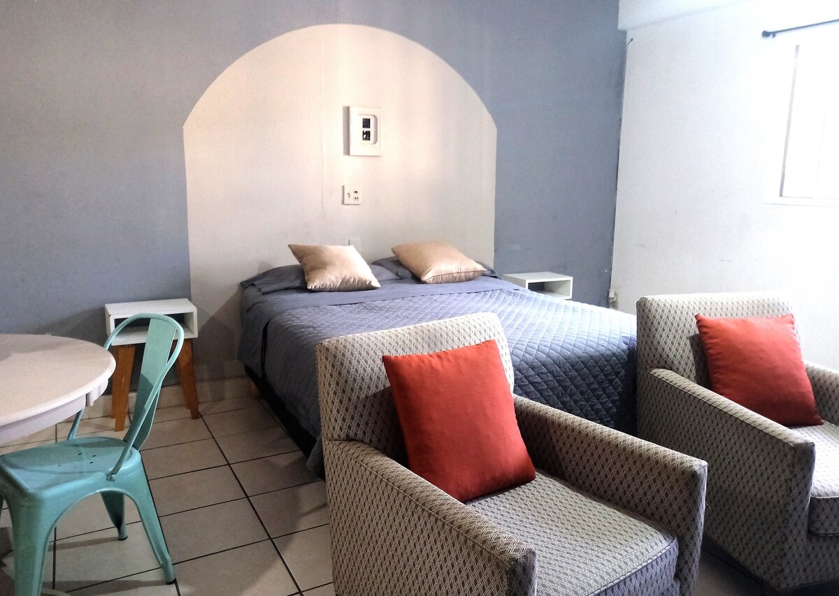 静かで安全、かつ中心部に位置する宿泊施設のための、新しい/基本的なものをすべて備えた☆改装されたスペース5。アメリカ(国際自由橋)から3分、アメリカ領事館から15分、UACJ(アカデミア・デ・カタリニア)とメディカル・センター・デ・エスペシャルティデスから4分など、市内のいくつかの重要な場所に車で数分で行くことができる、素晴らしいロケーションにあります。自動入り口と敷地内の防犯カメラを備えています。クイーンサイズのベッドとソファーベッド、インターネットとNetflixアカウントを備えたスマートテレビがあります。