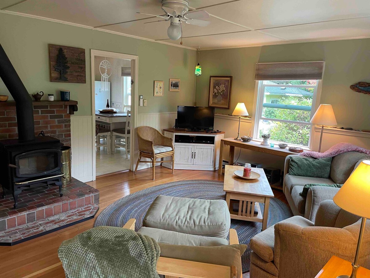 1930年代の快適なヤッチャットのコテージで、海やアートギャラリーまで徒歩圏内です。 裏庭は植物園に面しています。 コーヒーショップ、ベーカリー、醸造所、レストランがある繁華街から1マイルです。 リビングエリア、暖炉、ケーブルテレビ、オリジナルの木製フロア、明るく魅力的なサンルームで朝のコーヒーを飲み、地元の野生動物を垣間見ることができます。 海の音を聞きながら眠りにつきましょう