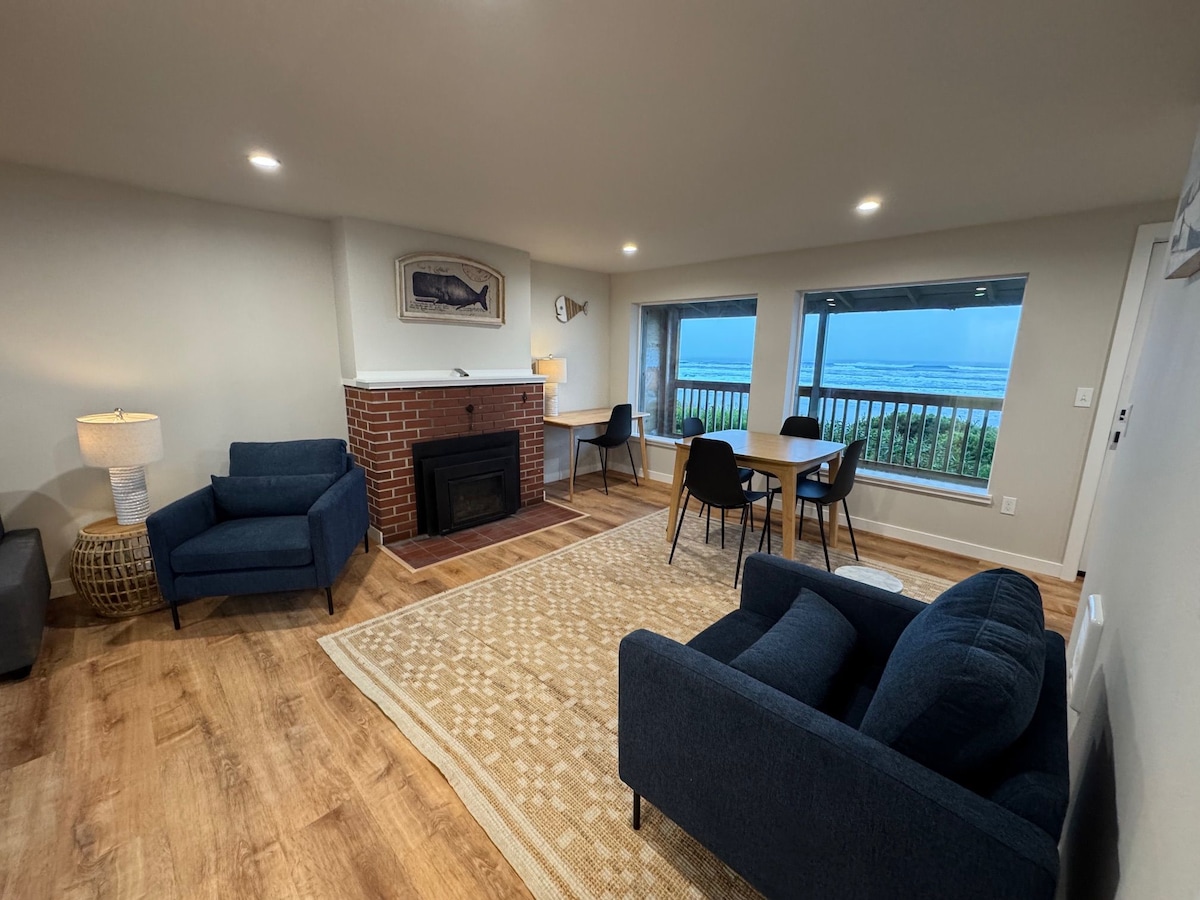オレゴンコーストの魅力を体験してください。ガス暖炉を備えた新しく改装されたオーシャンフロントのデュプレックスコテージで、手つかずの自然が残るビッグスタンプビーチに完璧に位置しています。玄関を出ると、何マイルも続く砂浜の海岸線が広がり、波のリズムと海岸のそよ風がビーチでの休暇にぴったりの背景を作り出しています。 内部には、海辺での食事後に簡単に清掃できる食器洗い機など、モダンなアメニティを備えた設備の整ったキッチンがあり、内装は丁寧に改装されています。コテージは最大4名様まで収容可能で、寝室にはキングサイズのベッド1台、居間の居心地の良いテレビコーナーにはフルサイズのスリーパーソファ1台があります。屋根付きのオーシャンフロントデッキでは、天候から守られながら海の音を楽しむことができます。ガス暖炉が、滞在中の温かく魅力的な雰囲気を演出します。 海岸アドベンチャーに最適な拠点: 北はワルドポート(数分):ドック・オブ・ザ・ベイまたはマッキンリーズ・オレゴン・コースト・マリーナからカニ釣りなどの本格的な沿岸アクティビティに参加してください。干潮時には、橋の近くで貝殻を拾ってみましょう。 南はヤチャッツ(わ(わずか数マイル):魅力的なレストランを発見し、劇的な海岸線沿いの素晴らしい岩の潮だまりを探索しましょう。 さらに探索:魅力的なニューポート水族館(北へ30分)を訪れるか、冒険に出かけましょう。サンドデューン(南へ45分)へは徒歩、ATVレンタル、またはガイド付きツアーでアクセスできます。 団体でご旅行の場合は、ケープコッドコテージには、家族の集まりや友人との集まりに最適な8つのユニットがあります。共有アメニティには次のものがあります。 300フィートのプライベートビーチへのアクセス テーブルサッカーと卓球を備えたエンターテイメント対応のゲームルーム 無料のゲスト用ランドリー設備 電気自動車充電ステーション3台