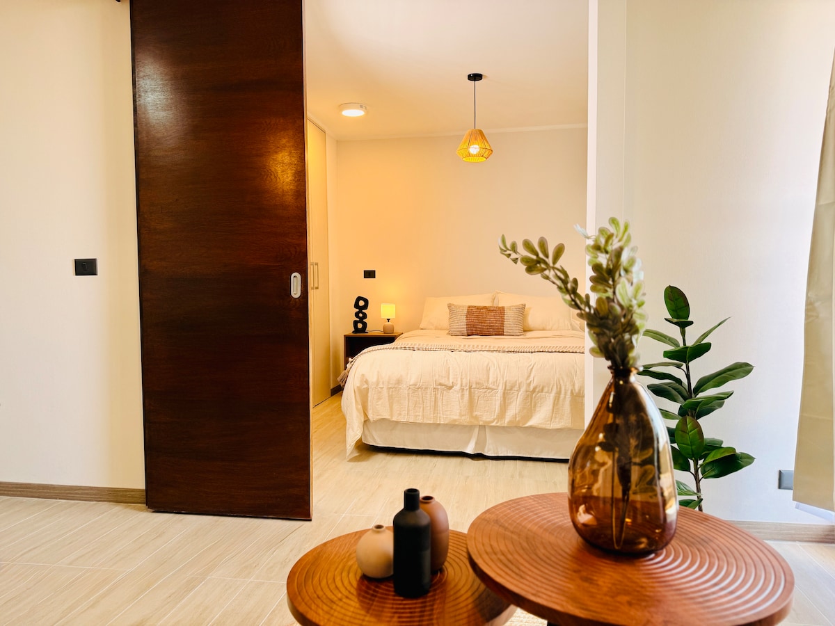 ようこそ! •近くの主要な大通りから、サンティアゴの多くの場所に簡単に行くことができます。 •リラックスできるように設計されたベッドでゆっくりお休みください。 •駐車場が含まれています。追加の駐車スペースが必要な場合はお問い合わせください。 •エスタディオナシオナル(6号線)とニューブル(5号線)の地下鉄駅からわずか数分。 •ショッピングセンターやスーパーマーケットに近い。 • 設備の整ったキッチンで、何でも料理できます。 •ご安心いただけるよう、建物内には防犯カメラが設置されています。 •モダンな34 m ²のアパート。