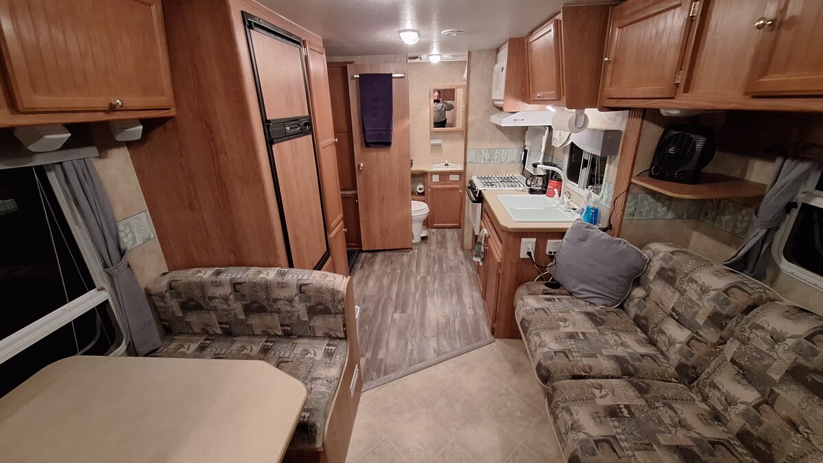 Chameleon: 2 room cabin, NO running water and no toilet facilities in the casita, sleeps 4, possibly 5, two (2) double beds in the bedroom, and a daybed for an extra person (for an added fee of $20.) Wood stove, hot plate & electric appliances for cooking. Open deck on the Pecos River! with an outdoor fireplace. Community bathhouse with commodes and showers, 300 feet from Chameleon. Some road noise can be heard, especially during peak travel times.