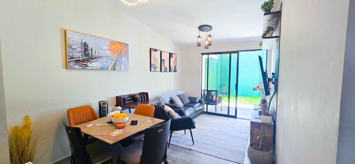 Disfruta de la seguridad de este alojamiento tranquilo y céntrico con excelentes atardeceres. Casa de 2 dormitorios con un concepto elegante en una zona residencial completamente cerrada, cuenta con Netflix y su propio Mall Panamericana. Llegada a partir de las 3:00 p. m. y salida hasta la 12:00 p. m., programación de la modificación $10 por hora. La tarifa base cubre a 4 personas. Un huésped adicional como máximo son $15 por persona y noche. Sera un gusto atenderte