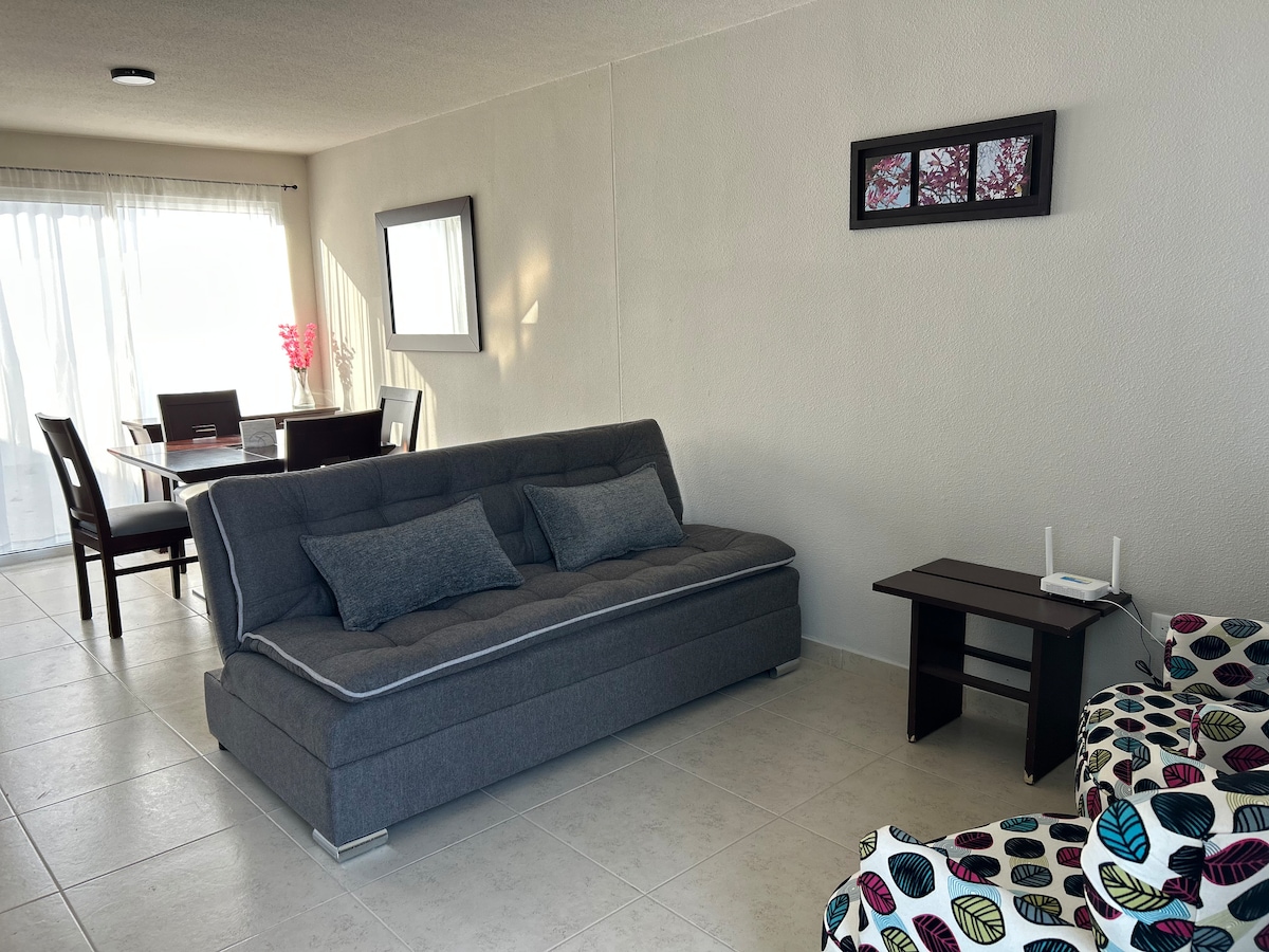 モダンで快適なアパートメント。家族旅行や出張に最適です。プールを利用できる、家族旅行に最適な宿泊施設です。 エグゼクティブや出張に最適。チェックイン可能。 高速で安定したWi-Fi。 ダブルベッド2台(4名様用)。 スマートテレビ(Sky付き)。 戦略的な立地で、工業団地やエコセンター・エクスポジターの近くにあります。ケレタロ中心部と空港から15分。 24時間警備付きのプライベート住宅地。