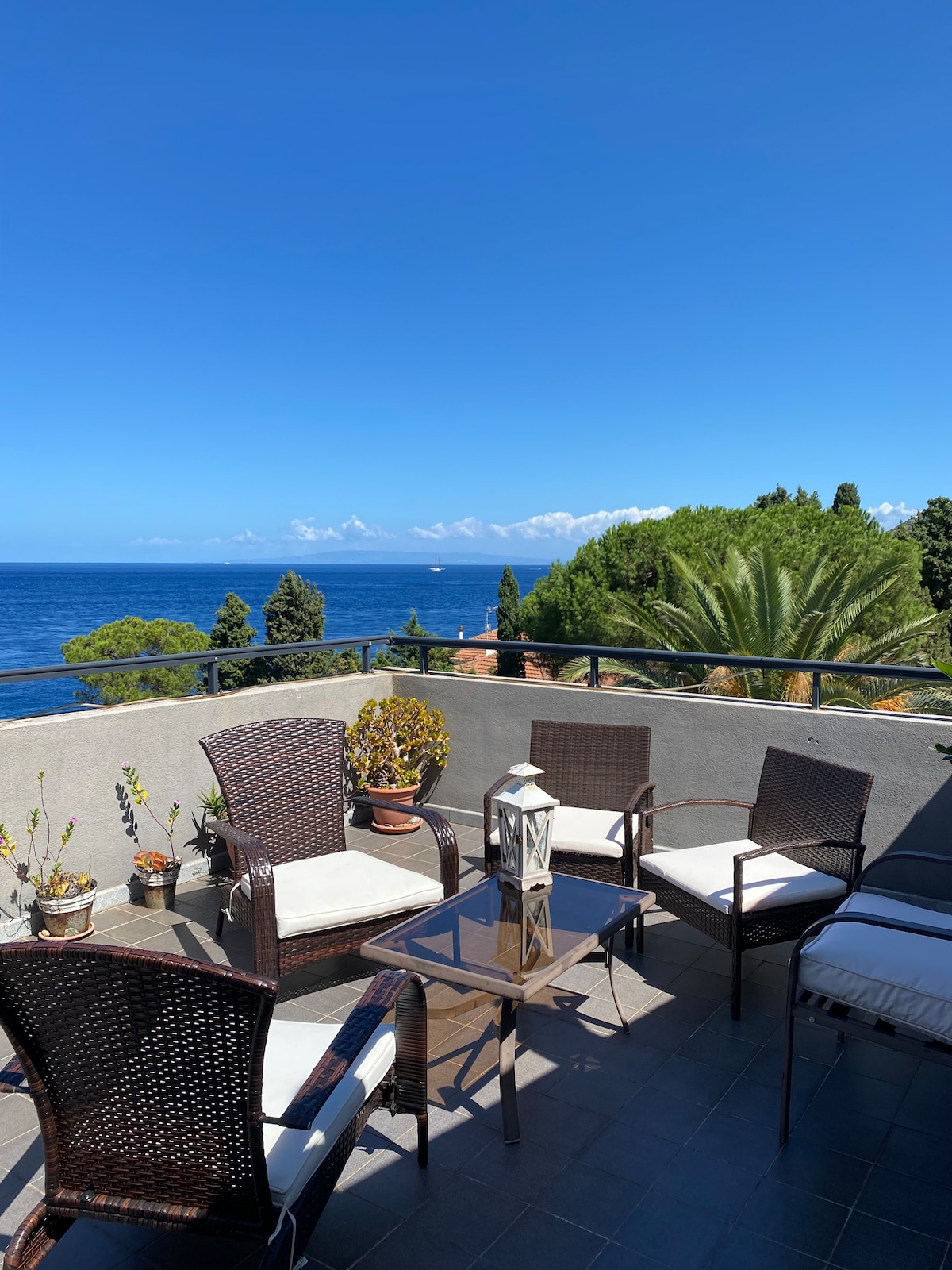 VILLA LOU TAORMINA Private Villa Panoramic Sea View Pool Exclusive use The villa has a furnished terrace facing the sea where you can relax and dine and guests have exclusive use of a sea view private swimming pool ..surrounded by a large garden with palms and exotic plants MUST CLIMB STAIRS AS STATED UNDER SAFETY & PROPERTY.