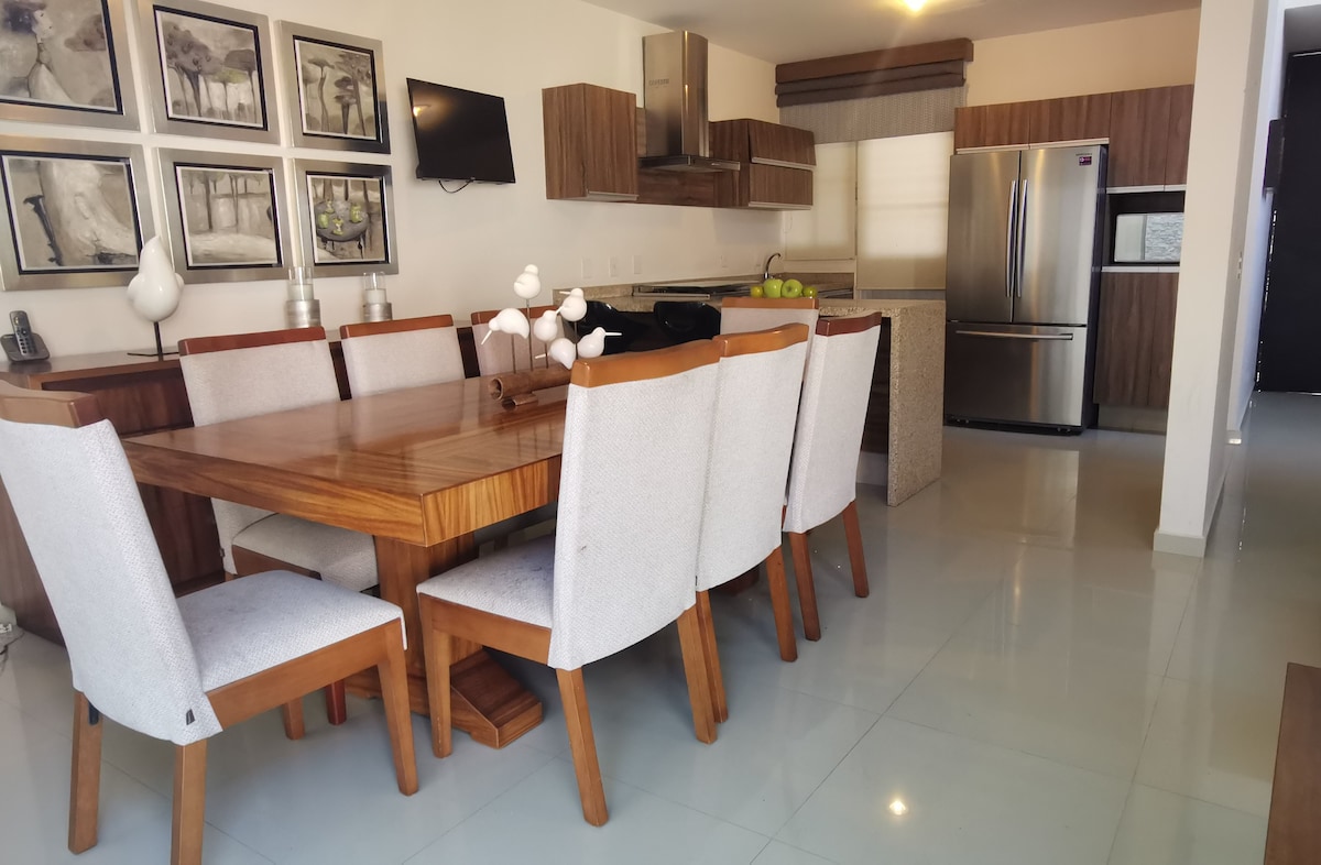 モダンで快適、そして安全なファミリーハウスです。 戦略的な場所からグアダラハラを訪れるのに理想的な滞在先です。 市の南側に位置する、あらゆる規模の家族のための快適さと機能性を考慮して家具が取り付けられ、整備された家です。 プライベートな敷地のセキュリティ、遊び場、庭、スペースの使用、モダンな家具は、5つ星ホテルの豪華さを備えた家の快適さを提供します。