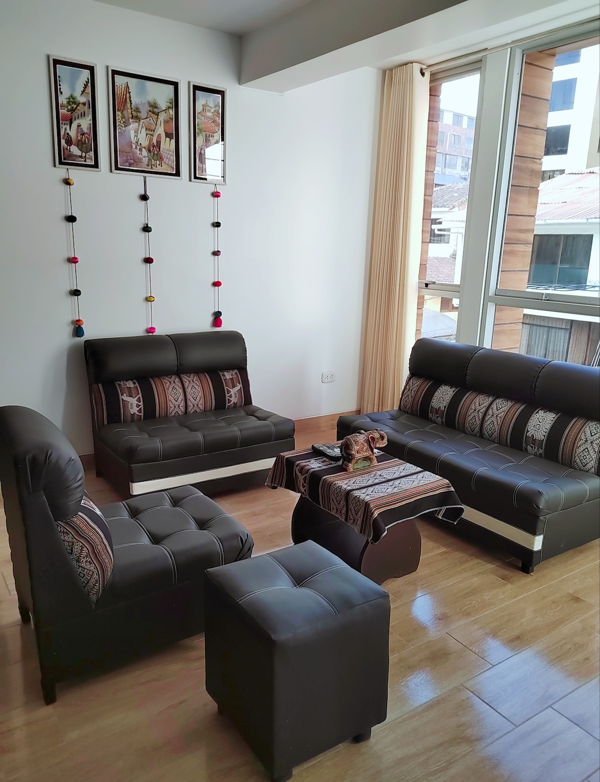 クスコの快適で広々としたアパートで、パノラマビューが楽しめます。最大6名様までご宿泊いただけます。テレビとヒーター(オプション)を備えた3ベッドルーム、フルバスルーム2室、リビングルーム、ダイニングエリア、設備の充実したキッチン、ランドリー、Wi-Fiを備えています。お湯は24時間365日ご利用いただけます。5階にあります(エレベーターなし)。駐車場あり。歴史地区からわずか数分で、クスコを快適に楽しむのに最適です。