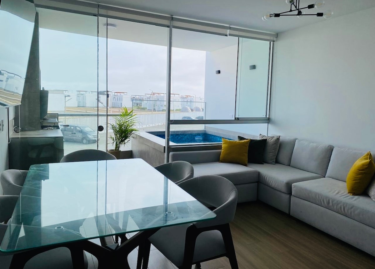 「Las Terrazas」コンドミニアムの1階にある120平方メートルのアパートからの直接海の眺めは、家族連れ、サーフィン愛好家、リモートワーカー、そして平和とリラクゼーションを求める長期滞在者に最適です。 セロ・アスールのサーフポイントの中心部に位置し、快適でモダンな空間で、Wi-Fi接続を提供しています。 観光スポットに近い: セロ・アスール・サーフポイント:30 m 歴史的な灯台:400 m フアニートレストラン:100 m レストラン「Don Satu」:100m プエルト・アスール・レストラン:800 m