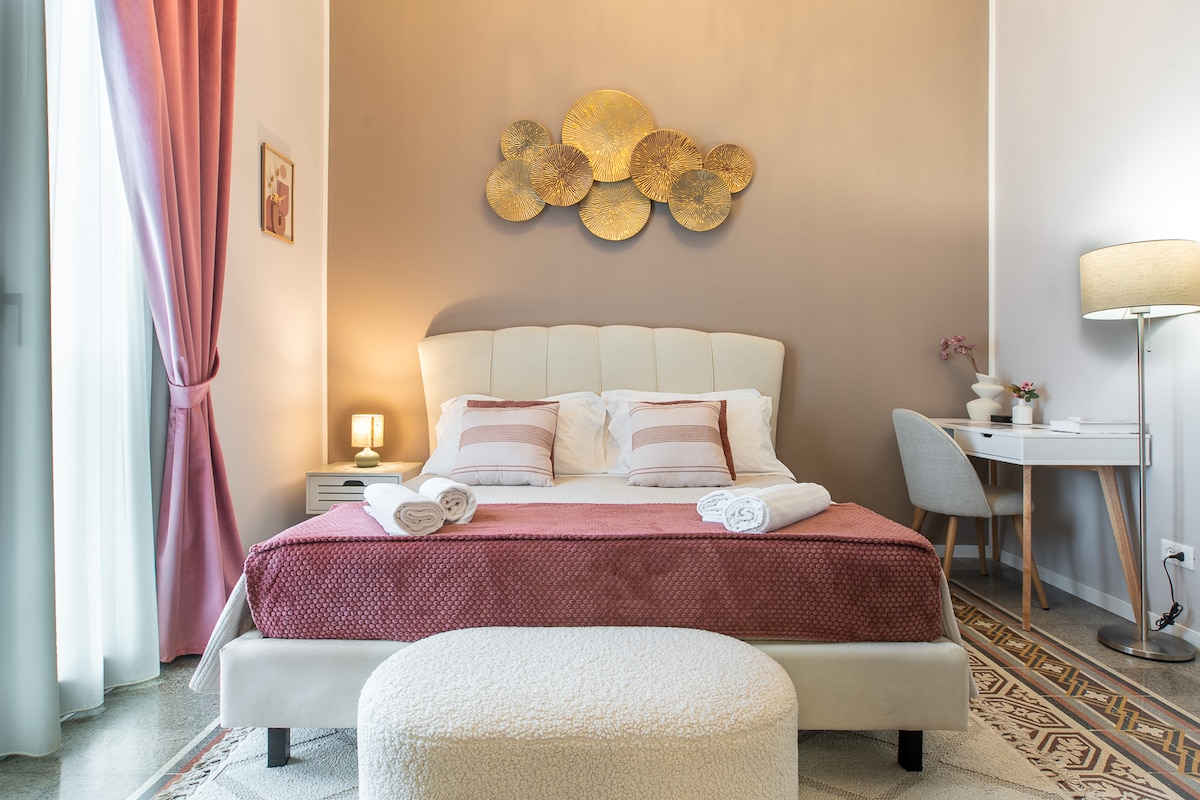 Afrodite room, è una delle due camere della nostra casa che mettiamo a disposizione per gli ospiti. E' una doppia con possibilità di letto aggiuntivo. le nostre camere sono adatto a coppie, famiglie, a chi viaggia per lavoro e sono complete di tutto il necessario per un buon soggiorno. Ben areggiate e solari. Vieni a trovarci, da noi ti sentirai come a casa tua!