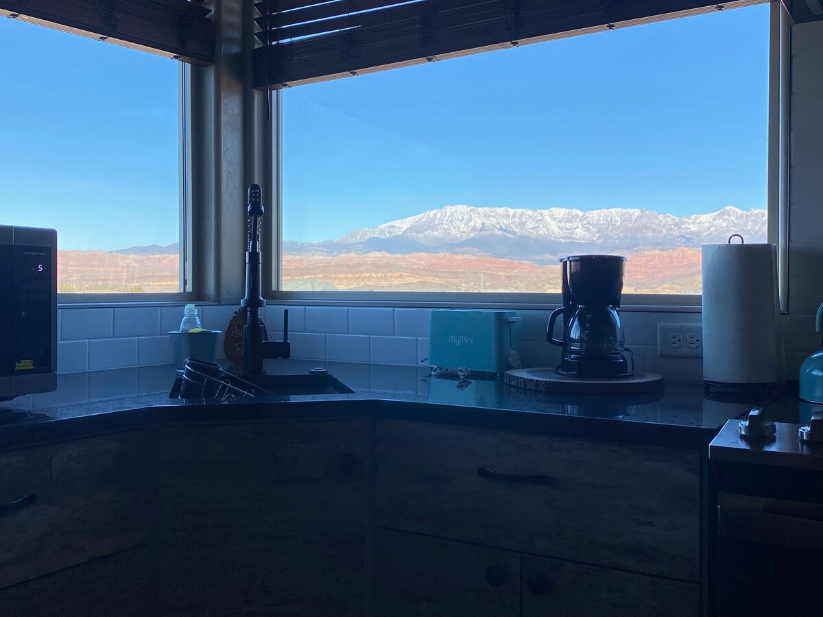 息をのむような景色、静かでリラックスできるエリア、人里離れたプライベートゲストハウス。 家全体に逆浸透水道があります。家全体で最も清潔な水を飲んで、入浴してください。 サンドホロー州立公園、デューンズ、クエイルクリーク貯水池、ザイオンズ国立公園、スノーキャニオン州立公園に近い!フルキッチン、ダブルランドリー、バーベキューグリル、テスラ充電器、Wi-Fiなど!! 四輪バギー/ボート/RV用の温度調節された駐車場が利用可能です。