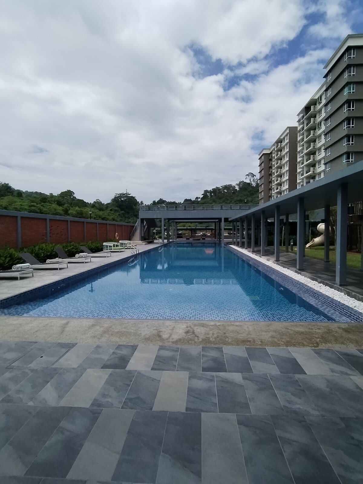 スリインダレジデンスのHomexuite Vacation Condoへようこそ。 プールと丘の景色が楽しめる緑豊かな環境にあります。 こちらの静かでおしゃれなお部屋で、のんびりとおくつろぎください。