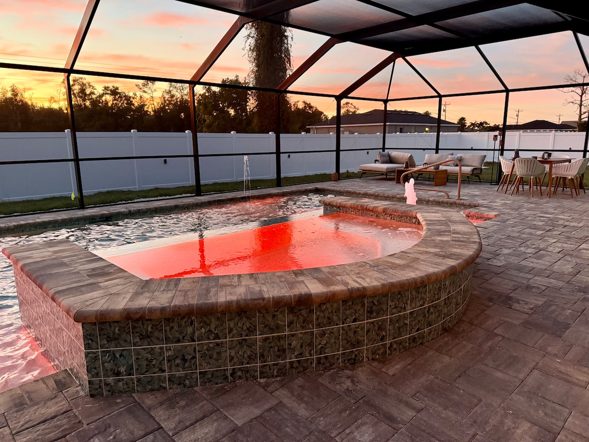 旅先の我が家のような、プライベートな宿泊施設へようこそ。家族連れやペット同伴のお客様向けのこちらの3寝室2バスルームのツインハウスには、温水塩水プール、スパ、スプラッシュパッド、日光浴用の棚、スクリーン付きのプールデッキ/ラナイ、フェンス付きの広い庭、スマートテレビが備わっており、ペット料金はかかりません。 ホストはデュプレックスの反対側に住んでいますが、ご宿泊施設は完全に貸し切りで、プール、裏庭、建物の横に細い中庭を独占的にご利用いただけます。 フォートマイヤーズビーチ、ボニタビーチ、サニベル、素晴らしいレストランから数分です。
