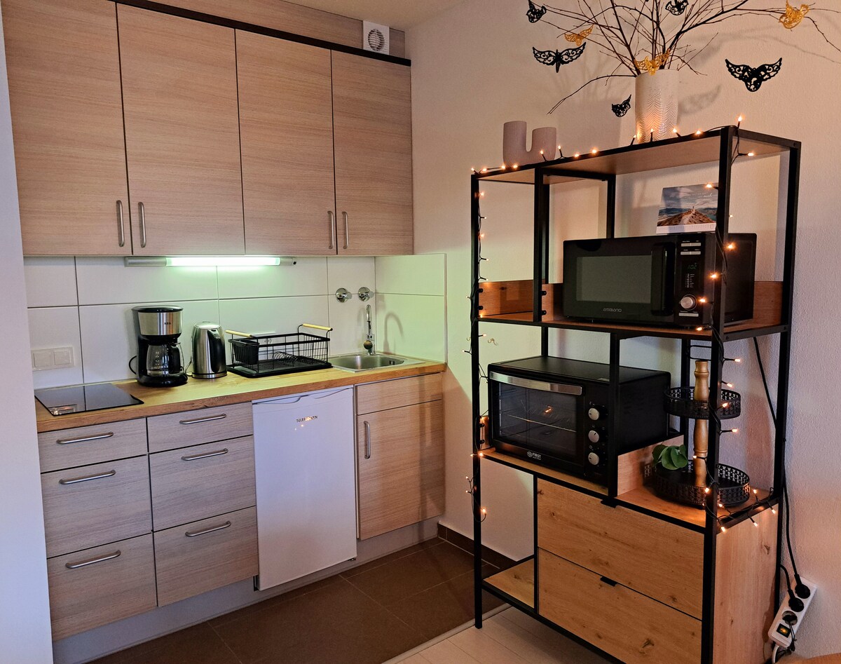 明るいリビングルームには、設備の整ったキッチン、チロル式のソファーコーナー、ソファーベッドが備えられ、最大6名様でのご利用に最適です。もちろん、IHクッキングヒーター、食器洗い機、冷蔵庫/冷凍庫、電子レンジ、コーヒーメーカー、電気ポットもあります。 外には快適な座席を備えた広々としたテラスがあり、リラックスして楽しむのに最適です。さらに、ヴィルドシェーナウのパノラマビューを自由に楽しむことができます。