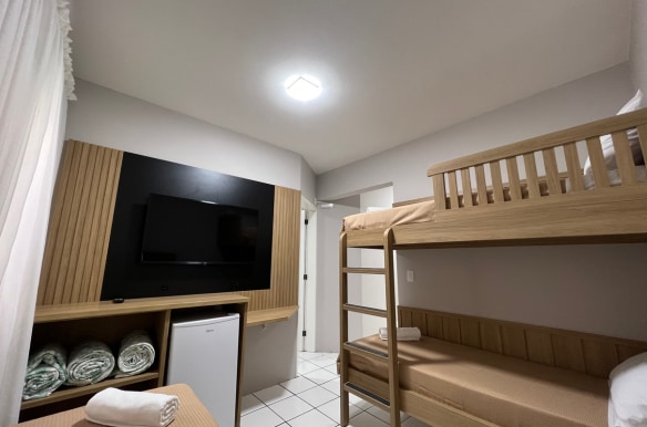 バルコニー付きスイートは居心地が良く、ボン・ジェズースの滝のビーチから150メートルの絶好のロケーションにあります。 家具と装飾が施された空間。 スイートには、クイーンサイズベッド、シングルベッド、ミニバー、スマートテレビ、エアコン、インターネットが備わっています。 **ご予約の際のご注意** 予約時にゲストの人数を間違って記入した場合、チェックイン時に追加料金が請求されます