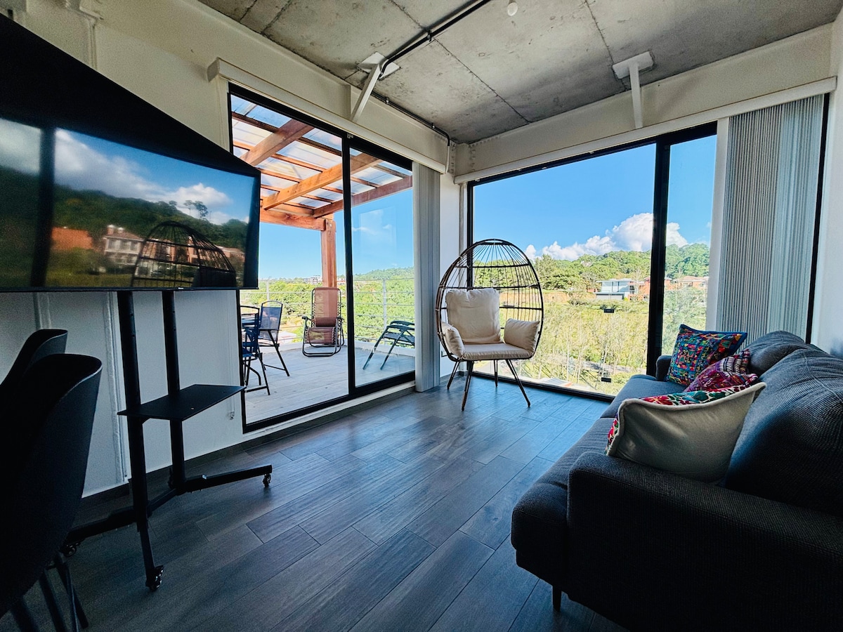 グアテマラシティのゾーン10にあるスタイリッシュな隠れ家。このスイートは、出張でも観光でも、3名様に最適な快適さと贅沢さをお楽しみいただけます。立地は、市内の最高のレストラン、ショッピングセンター、エンターテイメントスポットからわずか数歩です。 エレガントで機能的なインテリアは、お客様に最高の快適さをお届けするためにデザインされています。コーヒーステーション、スマートテレビ、プロフェッショナルな清掃サービスをご用意しており、完璧で快適なご滞在をお約束します。