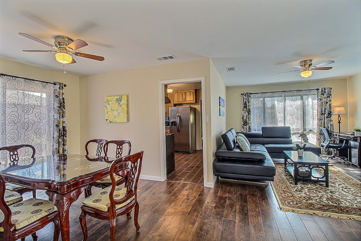新しく改装された広々とした家のような4B/2Bの家です。 ご家族やビジネスに最適です。 設備・器具のそろったキッチン。セントラルヒーティングとエアコン。 無料専用駐車場。専用の洗濯機&乾燥機。 RokuデバイスでYouTube TVをお楽しみください。 お子様連れに優しい:必要に応じてベビーベッドやその他のお子様用品をご用意しています。 便利な立地で、ハイテク企業、ショッピングモール、食料品店、病院、リーバイススタジアム、グレートアメリカ、SAPセンター、SJC空港などに近いです!