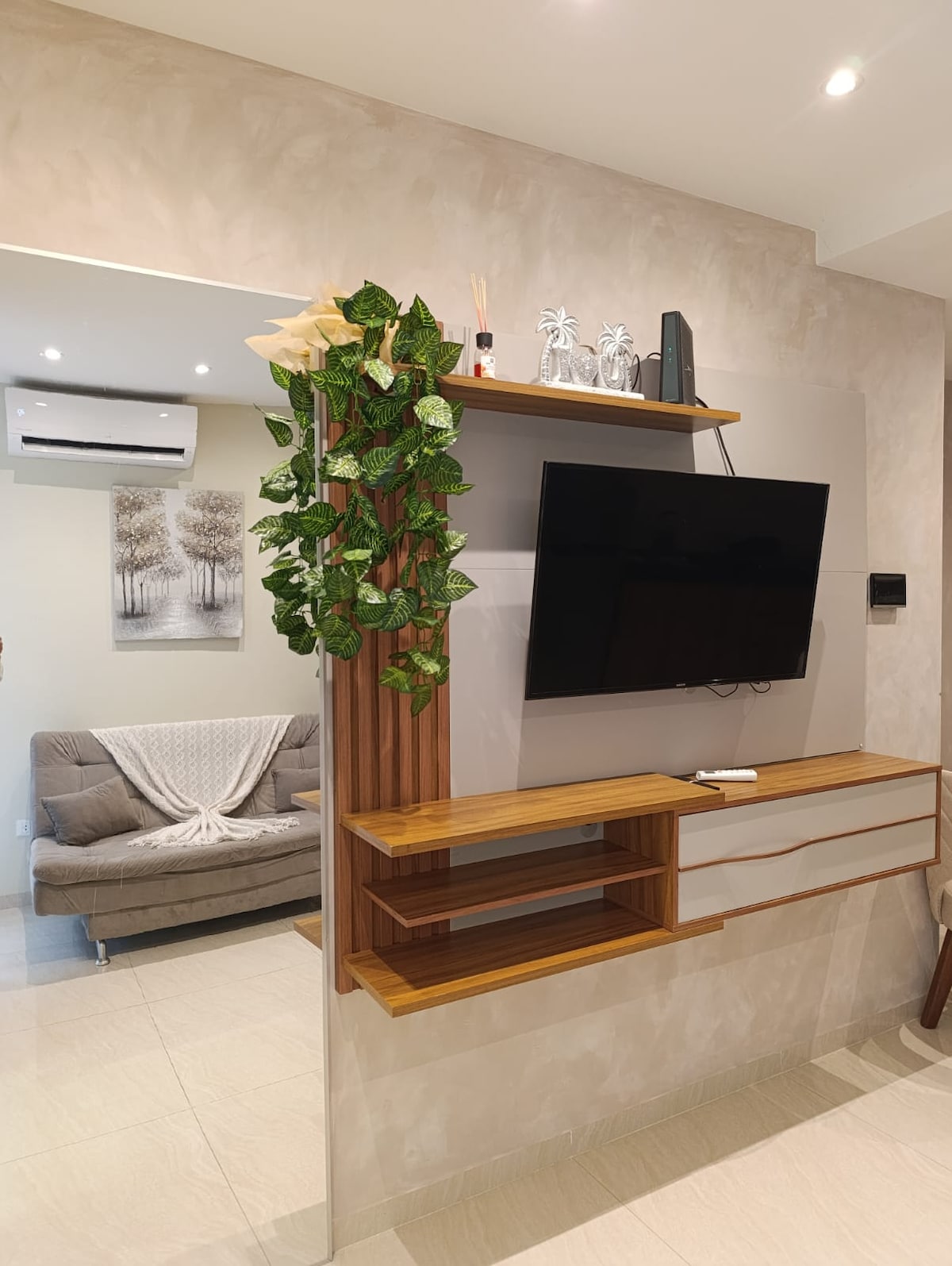 Este departamento tiene todo lo que necesitas para tu estadía en Santa Cruz. Relájate y goza de una buena peli en nuestro increíble y cómodo sofácama ¡¡No querrás levantarte de ahí!! Recarga tus energías con la estación de café que tenemos para vos y disfruta tu estadía de primera clase en este lugar amplio y confortable en una excelente ubicación, cerca de supermercados, centros comerciales, farmacias, restaurantes y a sólo 5min de la Plaza Principal "24 de Septiembre".