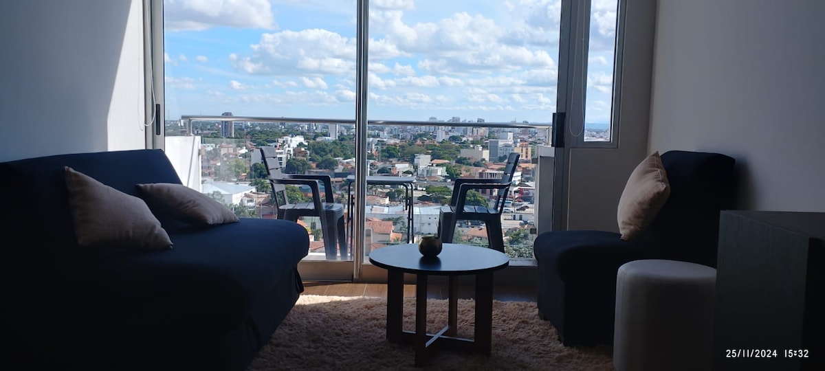 Llega al mejor lugar de toda Santa Cruz en Equipetrol ⭐️ exclusivo, Lujoso , moderno,SEGURO, elegante, con las mejores áreas sociales del país. Tienes bancos,farmacias,restaurantes,supermercado,todo al paso. Disfruta al máximo tu estadía de vacaciones, negocios o trabajo en Sky elite en plena avenida equipetrol 3 anillo frente al hotel los Tajibos . Wifi de muy alta velocidad de 300 Mbps y TV cable 🌎.