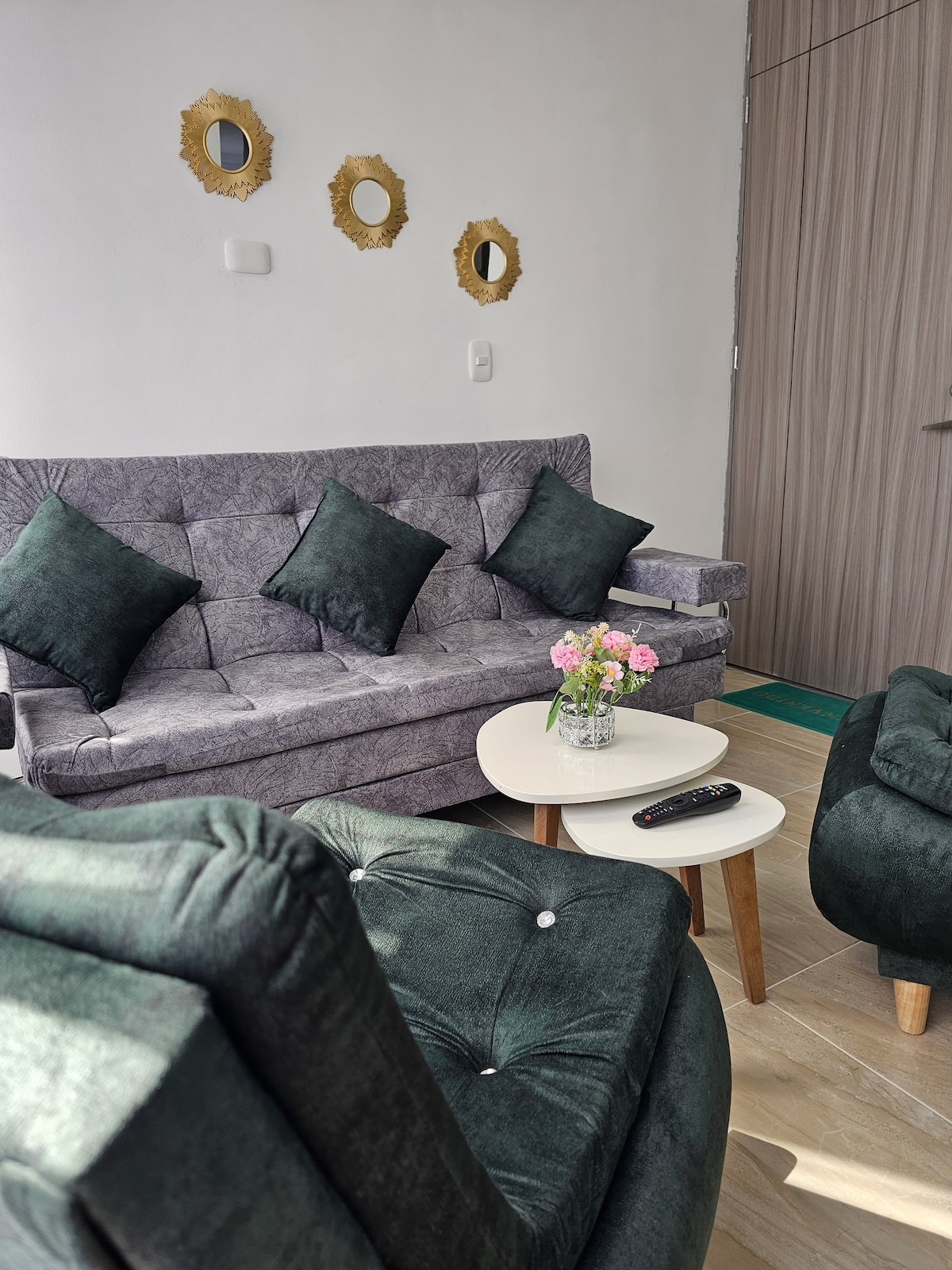 美しいアパート、60メートル。山の素晴らしい景色、最高の気候、100%家具付き、そして完璧なロケーション。 6名様用の3つの客室、標準ケーブルテレビ、120mgsのWi-Fi、2つのシャワーで温水、家電製品:冷蔵庫、洗濯機、ミキサー、アイロン。屋根付き駐車場、プール、子供用プレイグラウンド。 車で8分のところに、C.C.ラ・エスタシオンとアクア、5つのスーパーマーケット、ガソリンスタンド、銀行、レストランがあります。車でアクセスできる住宅地。