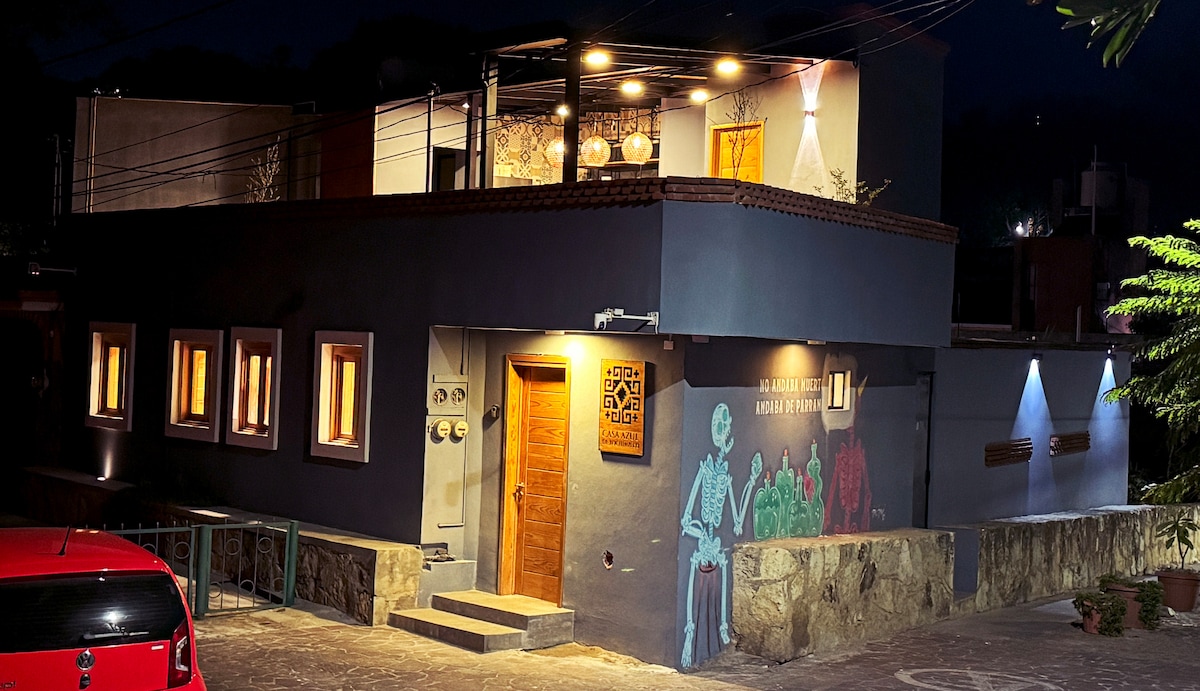 Hospédate en una icónica casa del céntrico barrio de Xochimilco, Oaxaca. Con cuatro recámaras, todas con aire acondicionado, es el lugar perfecto para descansar después de explorar la ciudad, ubicado a solo 10 minutos a pie del ex Convento de Santo Domingo. Casa Azul se ha reinventado como un alojamiento completo, con un amplio patio y una hermosa terraza para disfrutar de las tardes oaxaqueñas. Cerca de la casa, hay restaurantes, cafeterías, galerías, tiendas y mercados tradicionales.