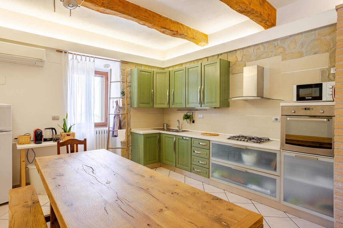 オリーブの木や何世紀も前の樫の木に囲まれた田舎の農場は、海からわずか25分、サッソテットのスキー場から1時間の場所にあります。リラックスを求めるカップルやご家族に最適です。私たちの家は、昔ながらの静寂に包まれています。マチェラータから車で10分、ビーチから30分です。 お部屋はお客様専用です。当社では、HiFiシステムを備えたホームシアターをご利用いただけます。事前にご同意いただければ、薪窯をご利用いただけます。