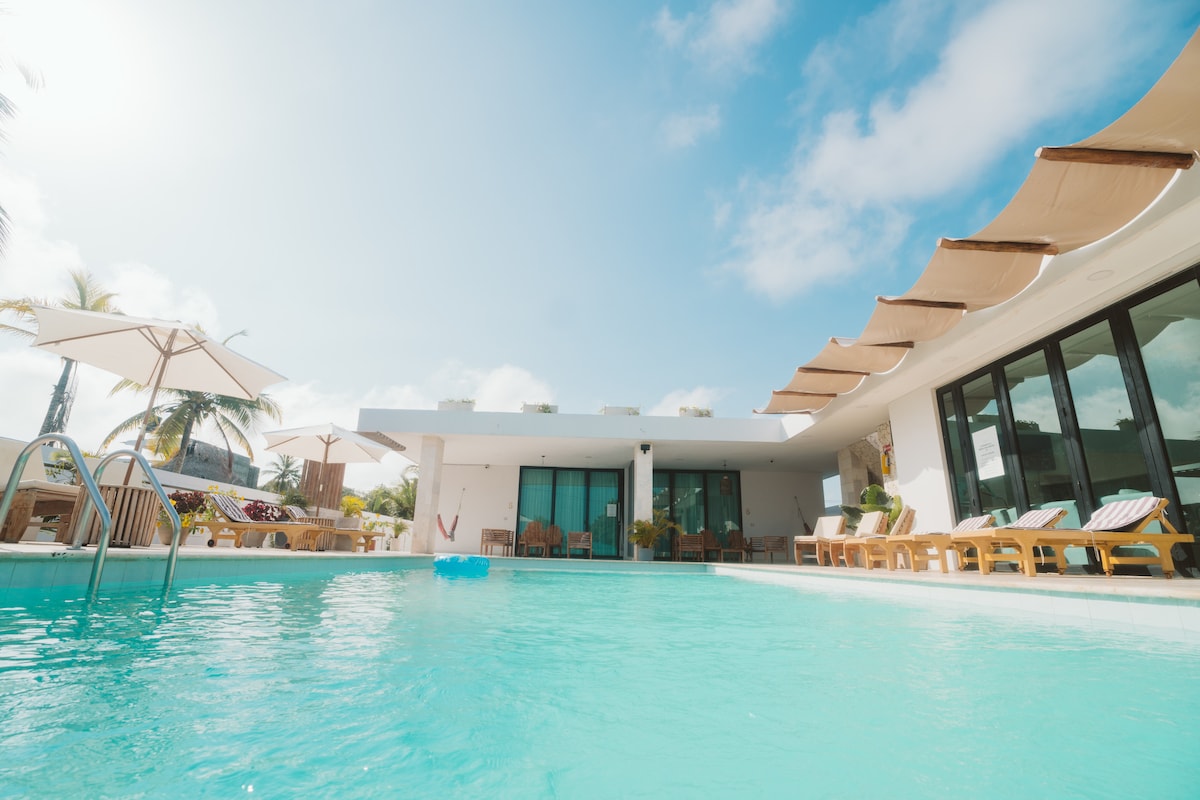 コヴェニャス、スクレにあるカリブ海に面したモダンなホテルで、ウェルネスとスタイルの完璧なバランスを実現。 その建築は、快適さと機能性を提供するように設計されたディテールとともに、リラックスできるオープンスペースを兼ね備えています。 カップル、家族連れ、そしてリラックスしたい、美味しい料理を食べたい、海辺の静かな雰囲気を求める現代の旅行者に最適です。