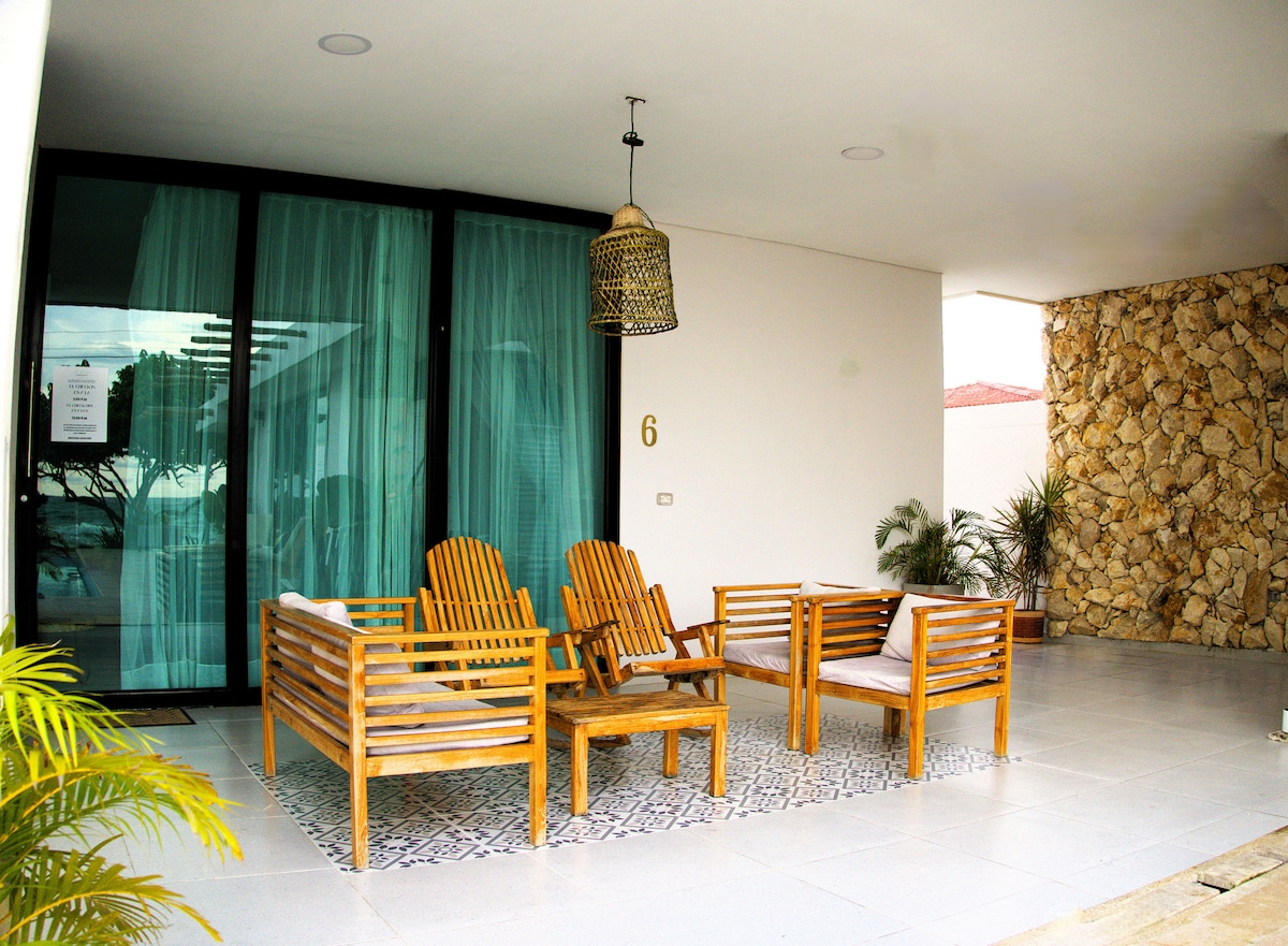 ビーチ、遊歩道、ティンティパン島、ムクラ島、サンベルナルド島を訪れるための港から200メートルの静かな場所です。 交通ターミナル、モロスキージョ空港、スーパーマーケットの近くにあります。 スルアンに滞在しましょう
