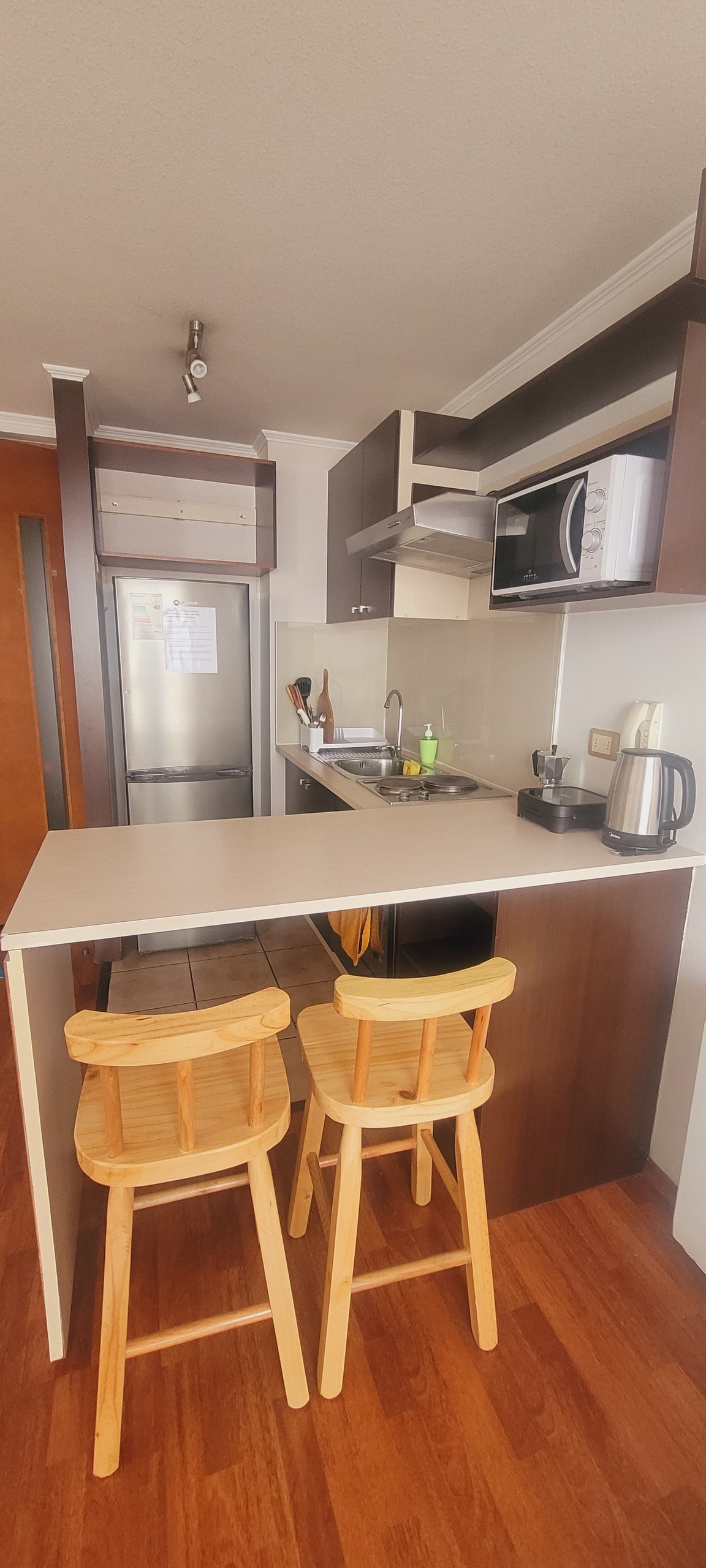 Cómodo y acogedor studio en Santiago centro, dos camas, un sillón, bien ubicado, locomoción y metro cerca Equipamiento : Secador de pelo Calefactor eléctrico Televisión (Netflix) Kit de costuras Botiquín básico Tabla de planchar Juguera, tostador eléctrico, sandwichera, horno eléctrico y frigobar