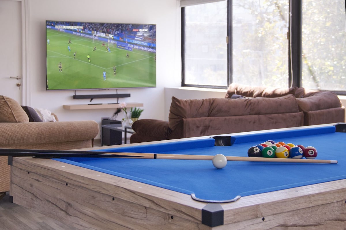 地下鉄の隣にあるエアコン付きの広々としたビリヤードテーブル