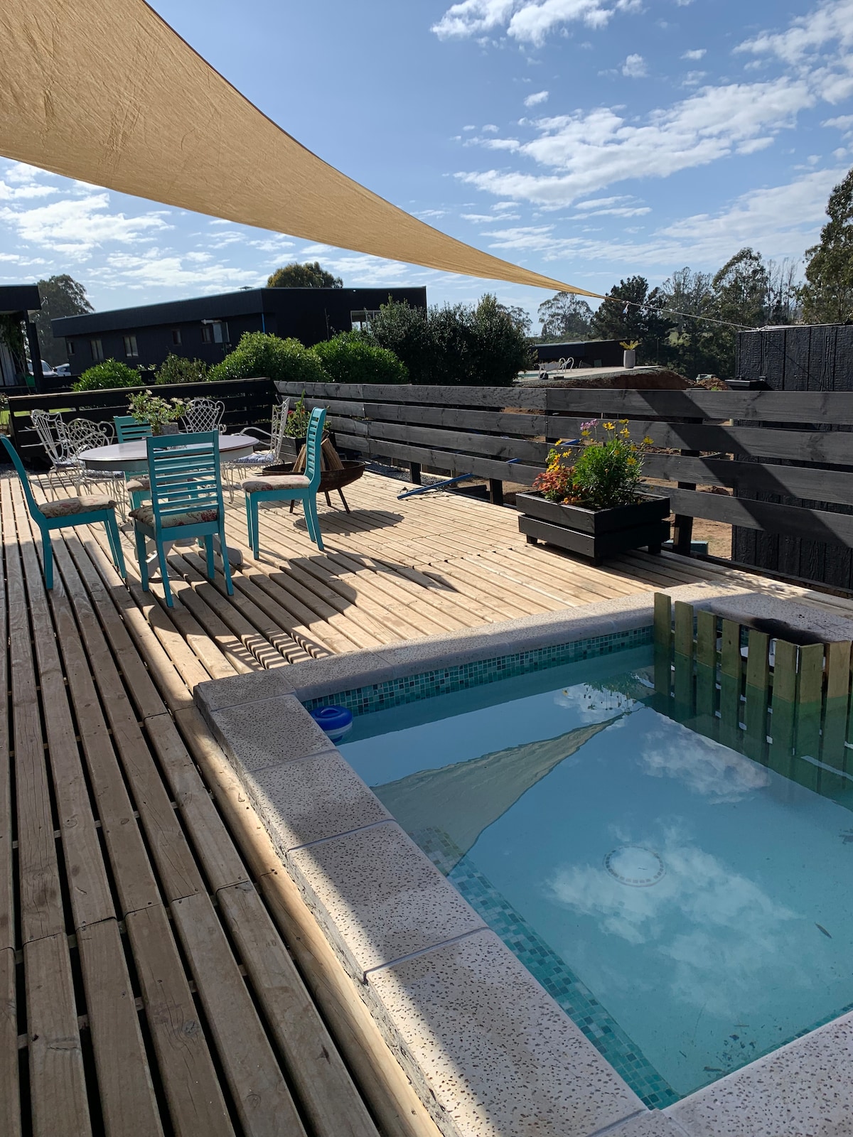 タイニー、温水プール、朝食。専用スペース