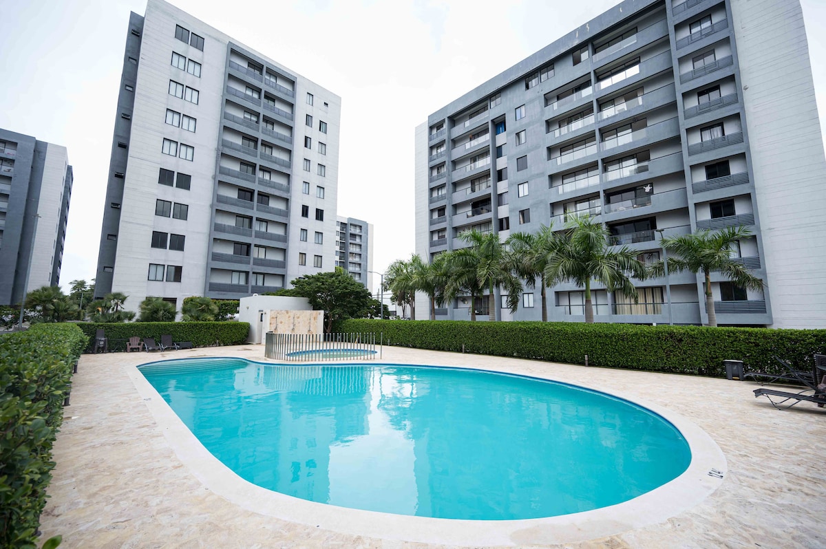 ⭐ GUEST FAVORITE! Experience true 5-star comfort in Santiago with our perfectly rated apartment in secure Residencial VALERA. Designed for productivity and relaxation, enjoy blazing fast Wi-Fi (300+ Mbps), a dedicated workspace, and reliable power backup. After a long day, retreat to our fully air-conditioned, spotlessly clean space, just an 8-minute drive from gourmet cafes and major business centers. Forget the community pool; this is your reliable, luxury home base.
