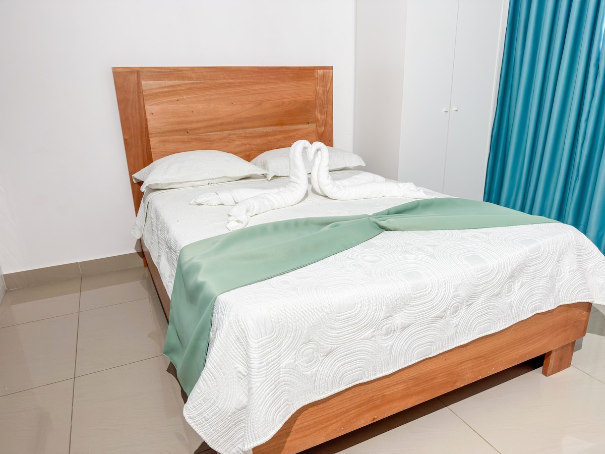 40m²の独立したワンルームアパートメント。クイーンサイズのベッド1台、天井ファン、エアコン、コンロ、冷蔵庫、電子レンジ、子供用のソファベッド1台、世界中のテレビチャンネルを観ることができるテレビ、シャワー、トイレ付きのバスルームがあります。 サンティアゴの中心部に近い、閉鎖された駐車場と熱帯庭園を望む素晴らしいプールがあります。