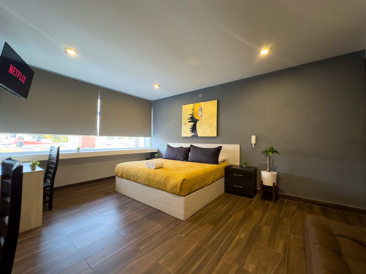 ブールバード/アメリカス地区に位置するロフトで、アメリカスショッピングセンターから徒歩5分、旧市街から10分、交通機関へのアクセスも簡単です。ガルシア・デ・レオン大通りから50メートルの場所にあり、徒歩で商業地区、レストラン、カフェ、市内の主要ビジネスや観光スポットに行くことができます。 企業、団体、または役員の方のための特別料金については、お問い合わせください。同じ建物内には他にも8つ8つのロフトがあります。