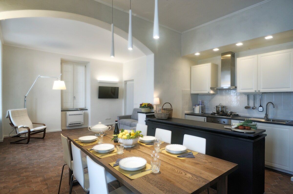 In palazzo settecentesco nel "Parasio" di Porto Maurizio, quartiere storico affacciato sul mare, appartamento di ampia metratura disposto su due livelli, silenzioso, accogliente e con vista sul porto turistico e sulla città. Si trova a poca distanza dalle spiagge di sabbia della "Marina" e del "Prino", raggiungibili a piedi in 5 minuti percorrendo scalinate panoramiche o con gli ascensori pubblici gratuiti (con fermata a 20 metri dal portone d'ingresso)