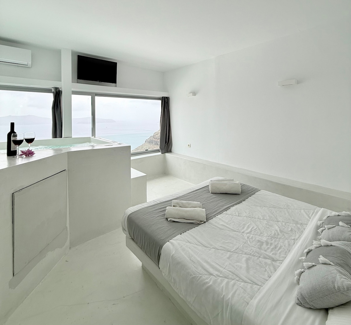 屋内ジャグジーとカルデラの眺望を備えたダブルルーム