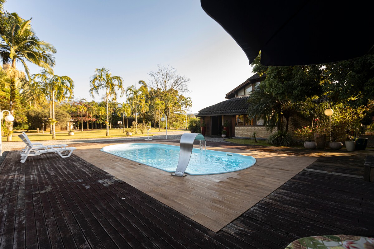 Apenas 15 min do centro de Joinville. Casa ampla, com belo jardim e piscina para você e sua família aproveitarem o melhor que o campo pode oferecer. 3 quartos (1 suíte), 3 banheiros, churrasqueira, forno e fogão a lenha, além de piscina e um lago para pesca. Ideal para um final de semana tranquilo. Vagas para a temporada já esgotando, garanta a sua.