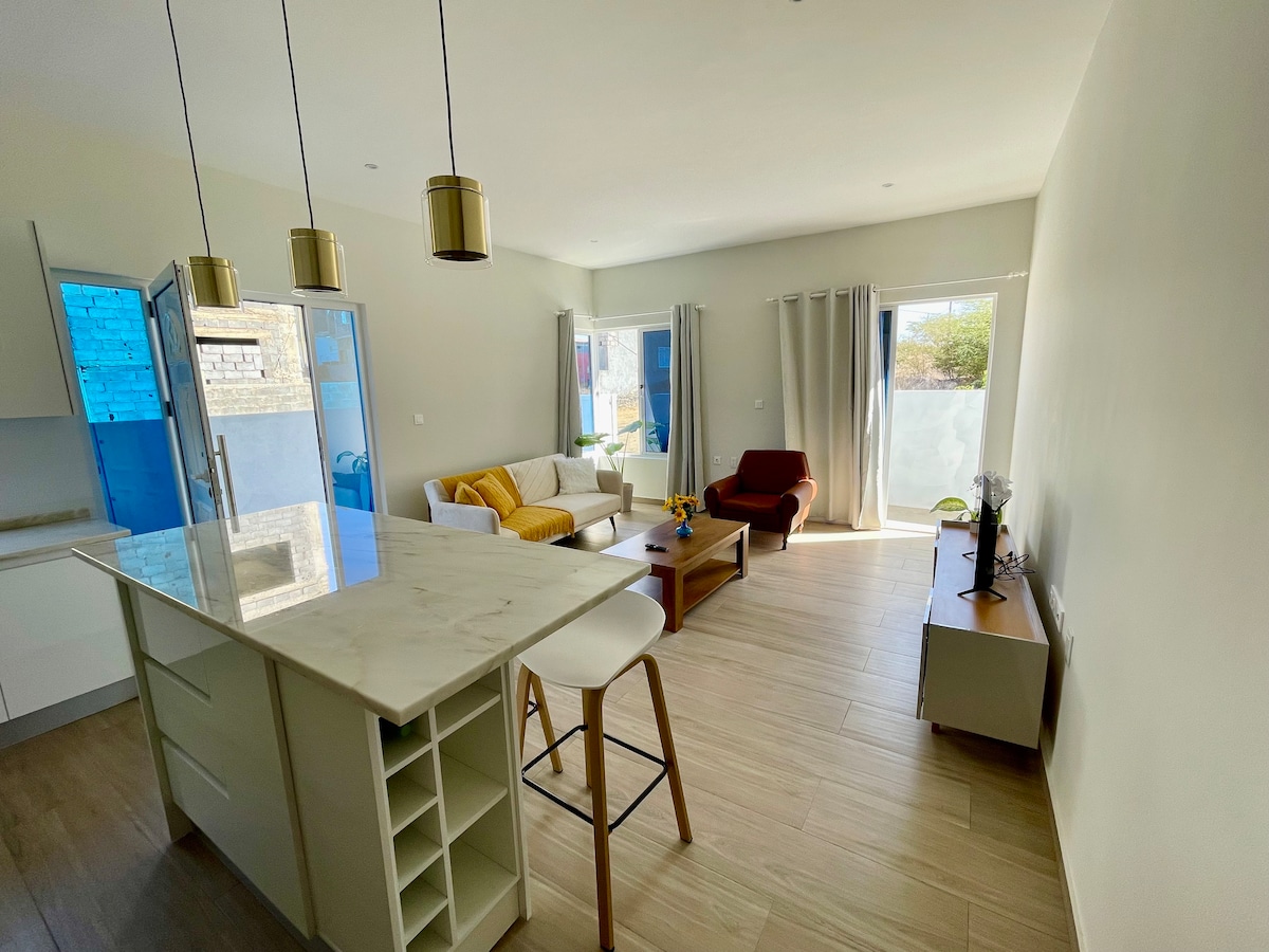 Brand new 1-bedroom apartment built in 2025, located in a quiet area of São Filipe. Fully equipped kitchen with stove, oven, microwave, and fridge. Features AC, fast Wi-Fi, TV, hot water, washing machine, sofa bed, service area, and exterior security cameras. Ideal for couples, solo travelers, remote workers, and long-term stays. Everything is brand new to make you feel comfortable and at home. The house is registered on Google Maps as Oliveira Residence.