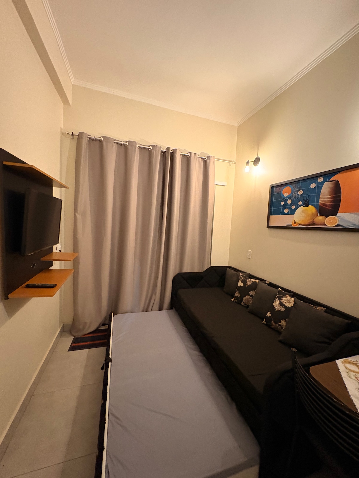 O Chalé Seriema oferece conforto e aconchego para o casal. O quarto conta com cama queen, banheiro privativo, banheira, chuveiro no box e ar-condicionado. Local iluminado com luzes de LED, frigobar e cantinho do café (cortesia). Fornecemos roupa de cama, banho, shampoo e sabonete. Um lugar tranquilo para você descansar do agito da cidade!! Estamos em zona rural, a 18 minutinhos da cidade, a 6km do turvo, de onde sair todos os passeios de lancha. Obs: Não temos churrasqueira!