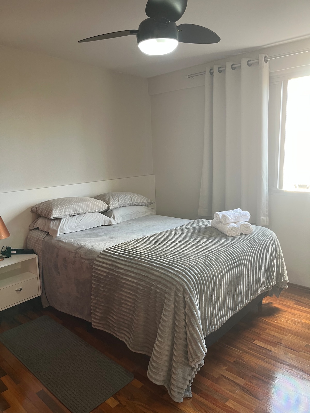 Nosso flat é amplo, confortável e perfeito para quem busca espaço e praticidade. Conta com 1 cama King size, além de 2 colchões extras, acomodando mais pessoas com conforto. Também dispõe de sofá-cama, ideal para famílias ou pequenos grupos. O ambiente é espaçoso e bem distribuído, proporcionando uma estadia agradável, seja para descanso ou trabalho. Ideal para quem valoriza conforto, espaço e boa acomodação. Fica a 5 minutos do centro! A localização é ótima.