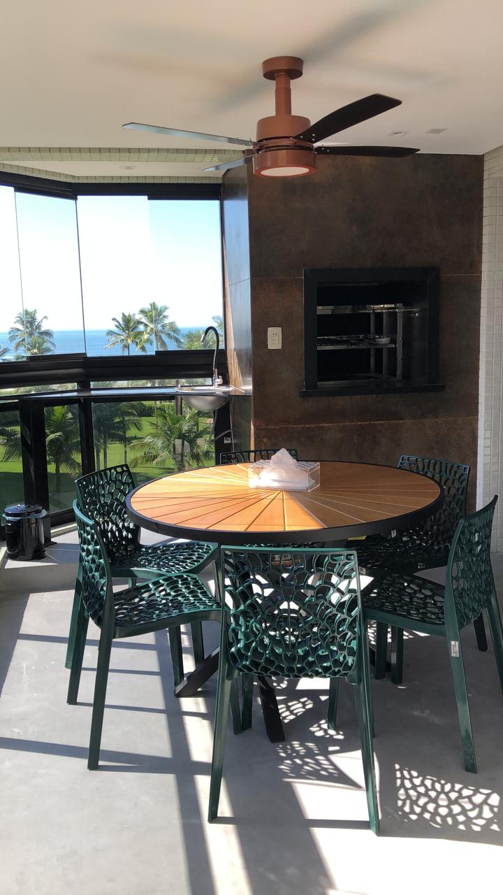 Apartamento 263 m2 de frente ao mar, com fantástica vista para toda a praia de São Lourenço e da Riviera. Grande varanda fechada com vidros circundando todo apartamento. Com 4 quartos, sendo 2 suítes, todos com armários embutidos. Ar condicionado em todos os cômodos. Televisão e acesso a internet de 120 mega. Excelente sala de jantar e cozinha conjugados com mesa p/+de 10 pessoas. Churrasqueira e mesa na varanda. Condomínio com grande conjunto de piscinas, academia e sauna. 3 vagas de garagem.
