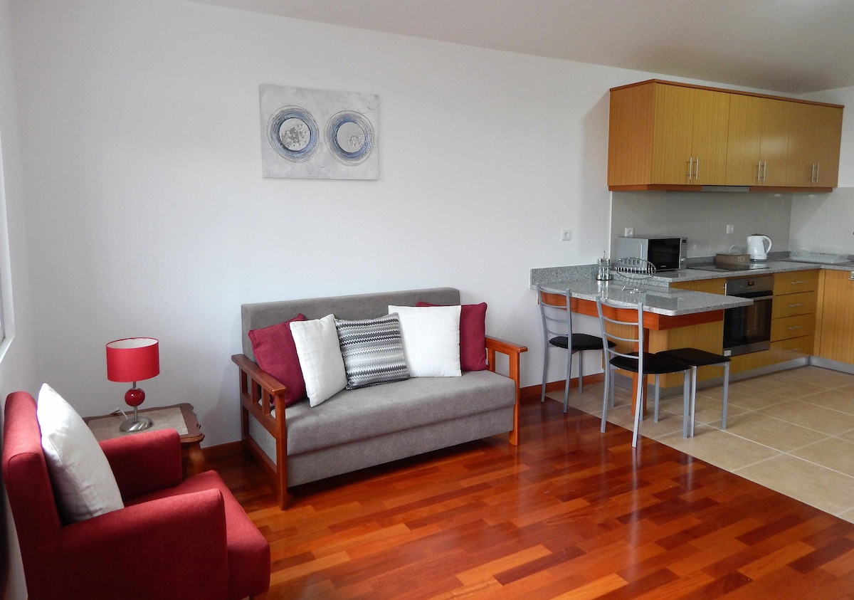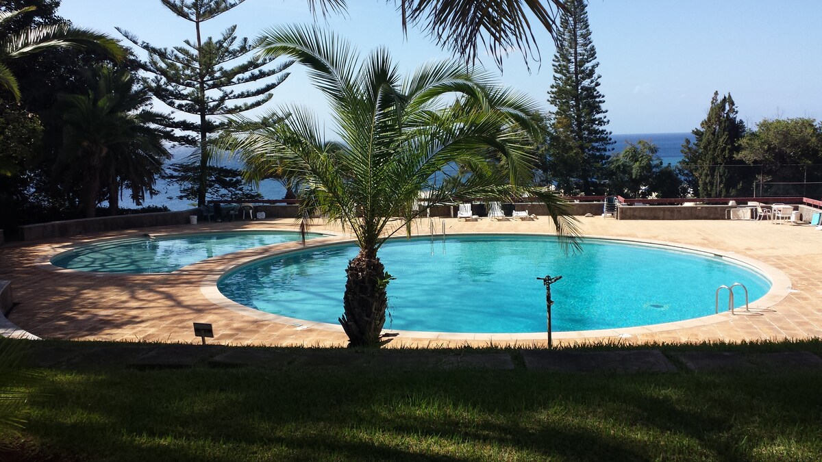 Cozy full-equiped studio, with everything you need for a comfortable stay. You can feel sounds of the sea and enjoy the views, within walking distance to the beach (5 minutes) and Funchal city center (4 km). In a private condo with 2 swimming pools, tennis court, park free and a garden in a residential area with bakeries, restaurants, supermarkets, pharmacy, hairdresser, shops and táxi stands nearby. Bus stop (bus to the center, also airbus and the sightseeing bus) is just outside the door.