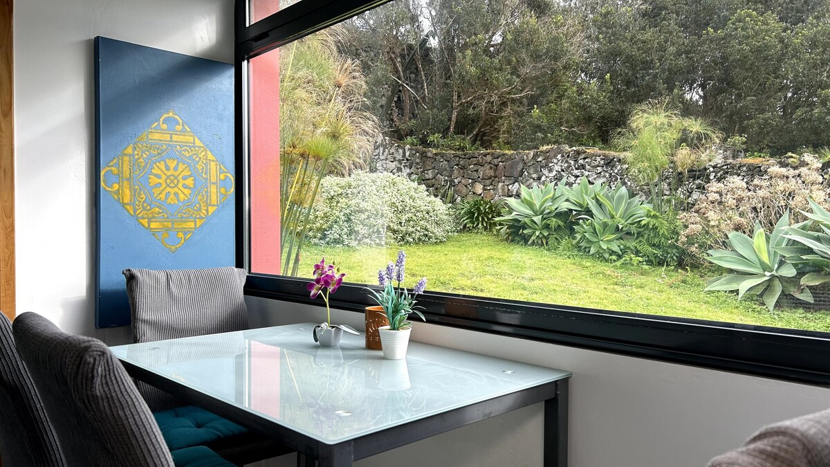 ようこそ! 全面改装された家へ。 サンタバーバラビーチまで徒歩圏内の便利なロケーションにあるこの3ベッドルーム2バスルームの素朴でモダンな家は、サンミゲル島の大地、海、空の美しさを取り入れ、背の高い火山岩の暖炉、地元の木製梁天井、ファームハウスのシンクとステンレス製家電を備えたオープンコンセプトのキッチンが特徴です。 8 ~ 10名様が快適にご宿泊いただけますので、大家族や2組のご家族に最適です。 家全体にリバースエアコンが設置されています。