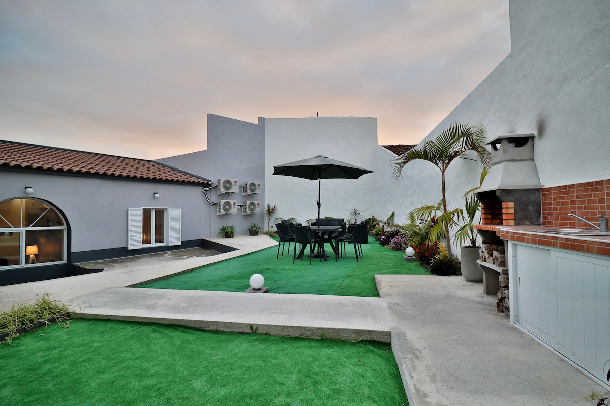 新しい5ベッドルームのヴィラには、プール、ジャグジー、バーベキューがあり、プライベートで安全なエリアにあります。歴史的な中心部のビーチや入浴エリアから車で5分。 ポンタ・デルガダのプライベートなロケーション、海と山の景色。 周辺はハイキング(自然公園の近く、徒歩5分)やヨガ(このアクティビティでとても人気があります)に行くことができます。 室内は開放的な空間のレイアウトで雰囲気を奨励し、寝室に分割されていると眠りに落ちるときに静かに過ごすことができます。