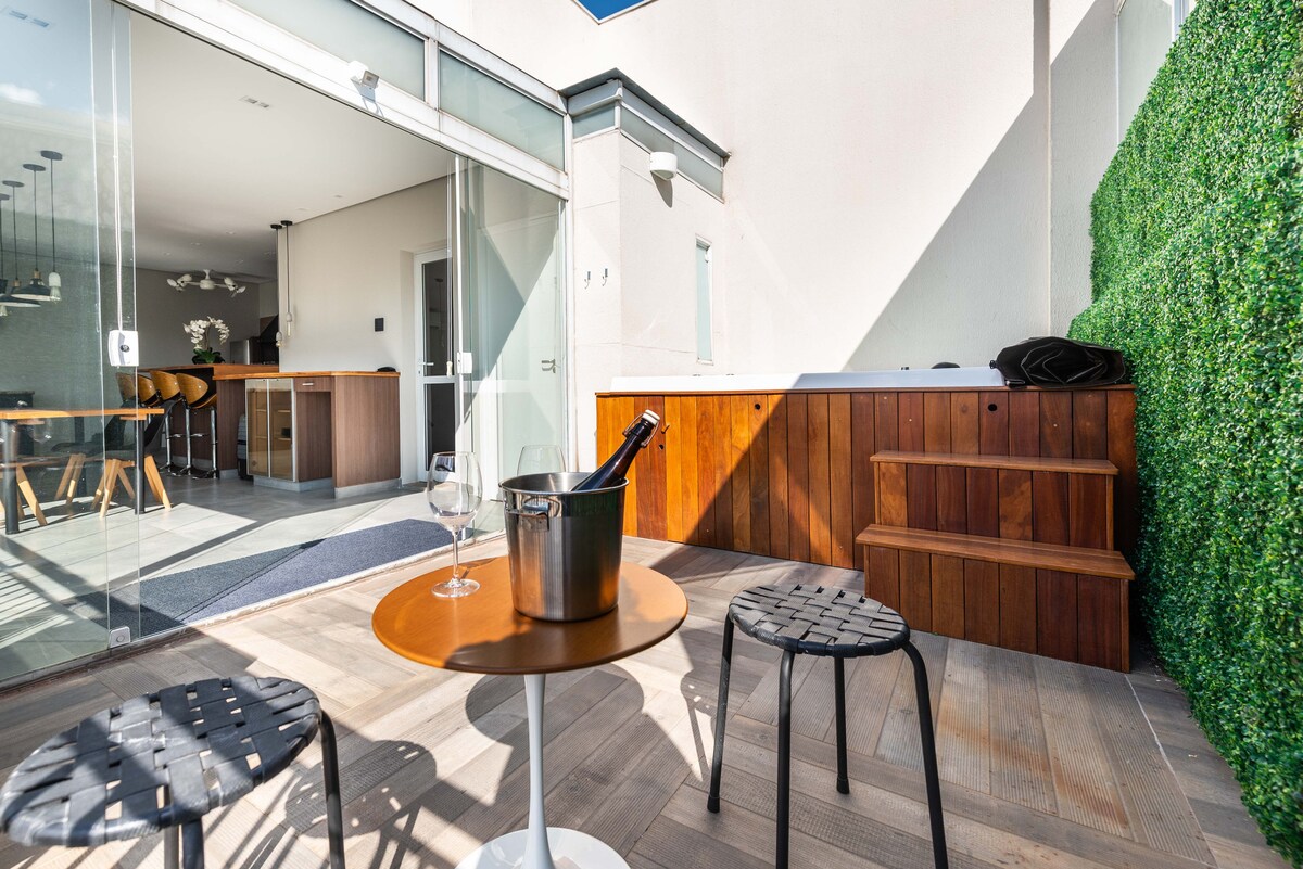 サンパウロ市内で最高の景色を望むことができる素晴らしい屋上。 パノラマビューのガラスサウナ、ハイドロマッサージとクロモセラピー照明付きの超温水ジャグジー、美しい植物の庭園を備えたプライベートテラスで、忘れられないリラクゼーションタイムをお楽しみください。 サンパウロでは他に同じようなものはありません。 キッチンとリビングルームは全てガラス張りで、天井は木製で、ポップコーンメーカーを備えたプライベートムービーセッションのためのハイパワープロジェクターが装備されています。