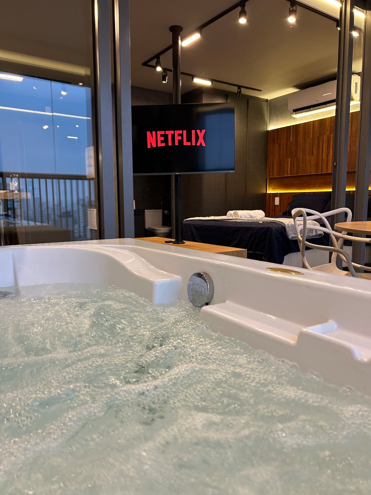イタイン・ビビの最高のロケーションにある洗練されたモダンなワンルームアパートメントで、イビラプエラ公園とファリア・リマ通りの近くにある最新でモダンな高級コンドミニアムです。サンパウロでのご滞在を快適にするために設計された環境です。ゲストはコンドミニアムの共用エリアにアクセスできます。-ランドリー、プール、フルジム、ゲームルーム、ラウンジ付きシェアスペース、ミーティングルーム、シェアワーキング、レジャースペース、24時間レセプション。- エアコンスプリット - 300 mbps Wi-Fi - フルキッチン - ベッド、テーブル、バス