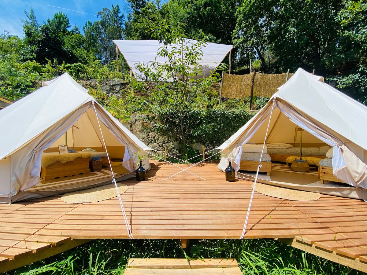 プライベートバスルームとテラスを備えた豪華グランピングエリア