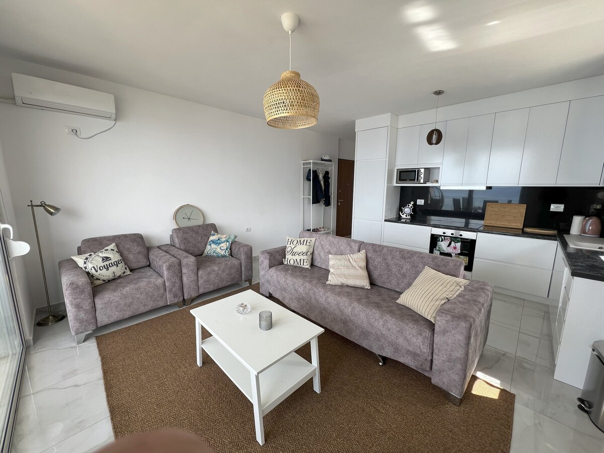 波の音で目を覚ますことを想像したことはありますか?モルディブのような海の景色を望む広くて明るいアパートで。 海から最初の列にあるとても広々としたアパートです。 アパートにはモダンな家具と家電が備わっています。 サランダの港近くにあり、中心部から徒歩10分です。平和な環境でリラックスし、果てしない青をお楽しみください。