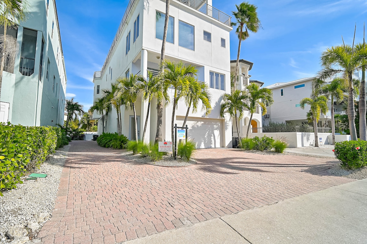 シエスタキーでのんびりくつろぎながら、遊びましょう。 有名な白い砂浜のすぐそばにある、居心地の良いシエスタキーのタウンハウスで、永遠の思い出を作りましょう。プライベートビーチにアクセスでき、道路を横断する必要がないため、家族全員で安全かつストレスフリーに過ごせます。広々としたリビングエリアでリラックスしたり、フルキッチンで料理したり、太陽の下で過ごした1日の後はゲームや映画の夜を楽しんだりできます。2つのベッドルーム、専用駐車場、近くのショップやダイニング、無料のシエスタキー・ブリーズ・トロリーが島の探索を簡単にします。
