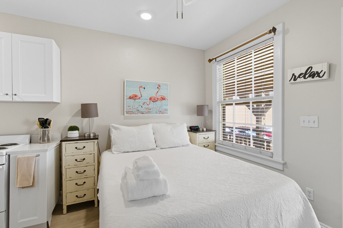 サラソータ湾から1ブロックの場所にある、マイアミデコ調の完全に改装され、家具が完備されたゲストアパートメントです。 このユニットは300平方フィート強で、フルキッチン、シャワー付きバスルーム1室、快適なクイーンベッド、スツール/椅子、薄型テレビ、Wi-Fi、路外駐車場、6つのUSBポートで充電が簡単、玄関先のテラスには屋外シッティングエリアがあります。 ダウンタウンまたはサンクトピーターズバーグ国際空港まで5分、リドビーチまで15分、シエスタビーチまで25分で、ユニバーシティパークウェイまたはフルーツビルロードへのアクセスも簡単です。