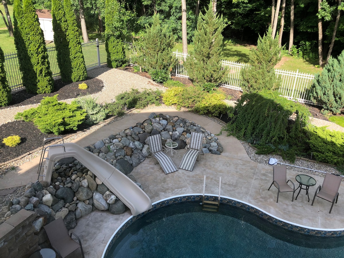 30 day, Seasonal Retreat, Top choice for business travelers & Friends/Couples. Perfectly located for Saratoga & Racetrack, Lake George, Albany, boating, ski & all Capital Region adventures. Escape the city & create memories - Experience The Hilltop Mansion at Rebecca's Fountain, in a hidden Estate overlooking the Mohawk River, Marina & Mountains. 11 bed oasis on 3 acres w/ pond, HotTub, outdoor games add extras like Private Hibachi Chef, Catering, Masseur, & more. Staff onsite. Experience more!